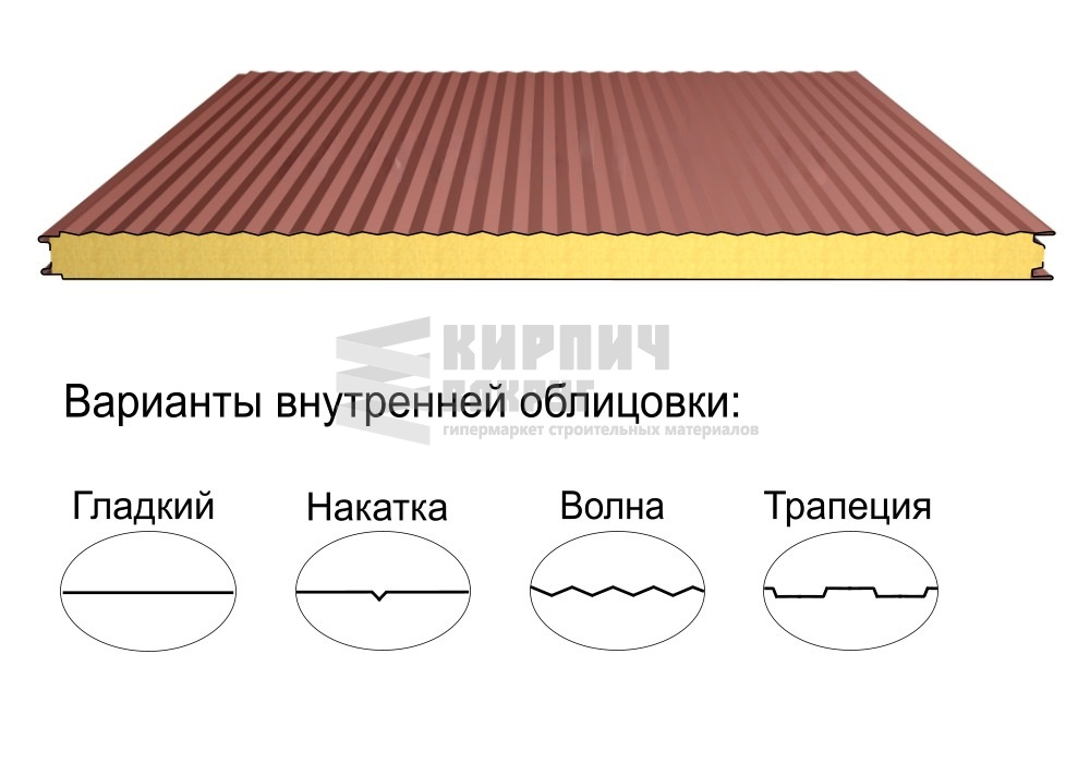 Строительный материал, имеющий трёхслойную структуру, состоящую из двух листов металла и слоя утеплителя между ними.